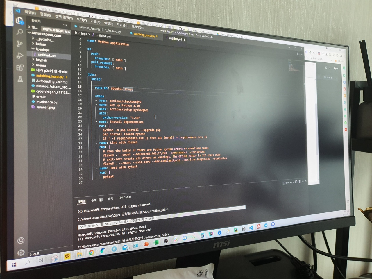 Configure를 누르면, workflows 하위 폴더에 yml 파일이 생성됩니다.