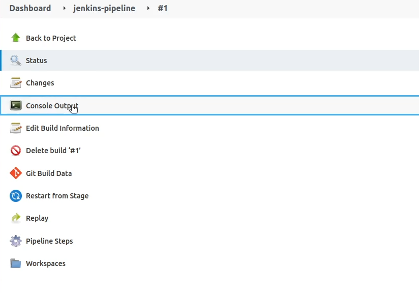 Console Output을 누르면 Stage log가 확인이 가능합니다.