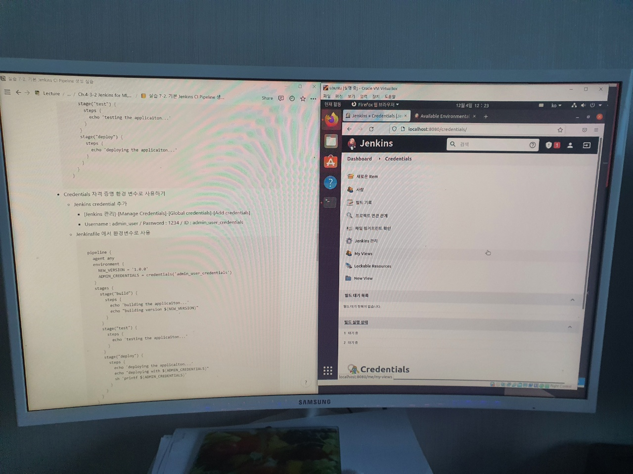 Jenkins 내부에는 자체 환경변수 목록들이 존재하는데, 여기에서는 Custom 환경변수를 사용하겠습니다. 코드를 한번 보면, " " 큰 따옴표 부분이 있는데, Custom 환경변수를 이용할 때에 큰 따옴표로 반영을 하면 됩니다.