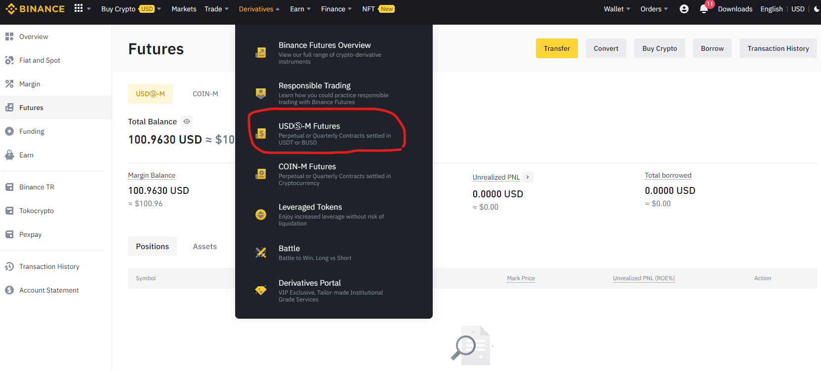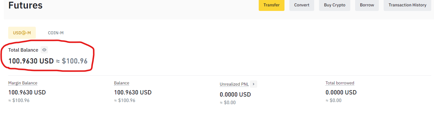 그 이후 선물 계좌에 있는 USDT의 보유 현황을 보고자 합니다. 저는 아래와 같이 100$ 정도의 USDT를 옮겨놨습니다.
