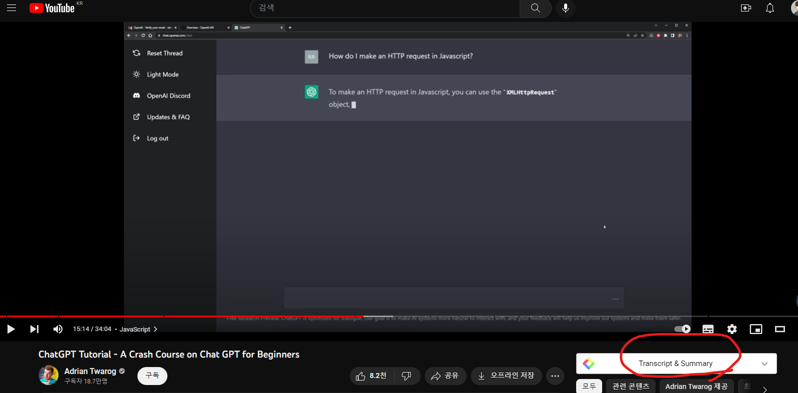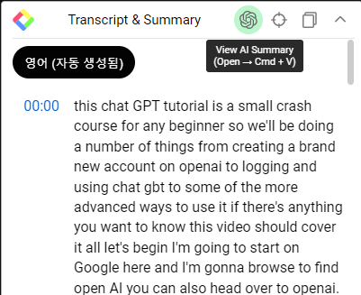 눌렀을 때 View AI Summary 버튼을 누르면 ChatGPT가 켜지며 스크립트가 복사가 됩니다.