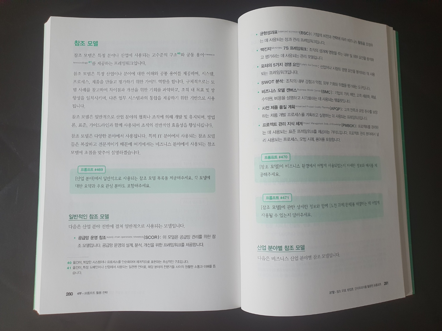 개인적으로 최근에 활용하고 있는 부분입니다. 바로 비즈니스에서 사용할 수 있는 여러 참조 모델들입니다. 참조모델과 프롬프트를 조합하여 사고 영역을 확장시킬 수 있습니다.