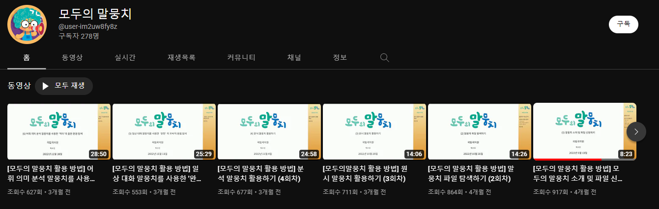 두번째로는 모두의 말뭉치 입니다. 사용 방법은 아래 모두의 말뭉치 유튜브 채널에 친절하게 설명하고 있습니다.