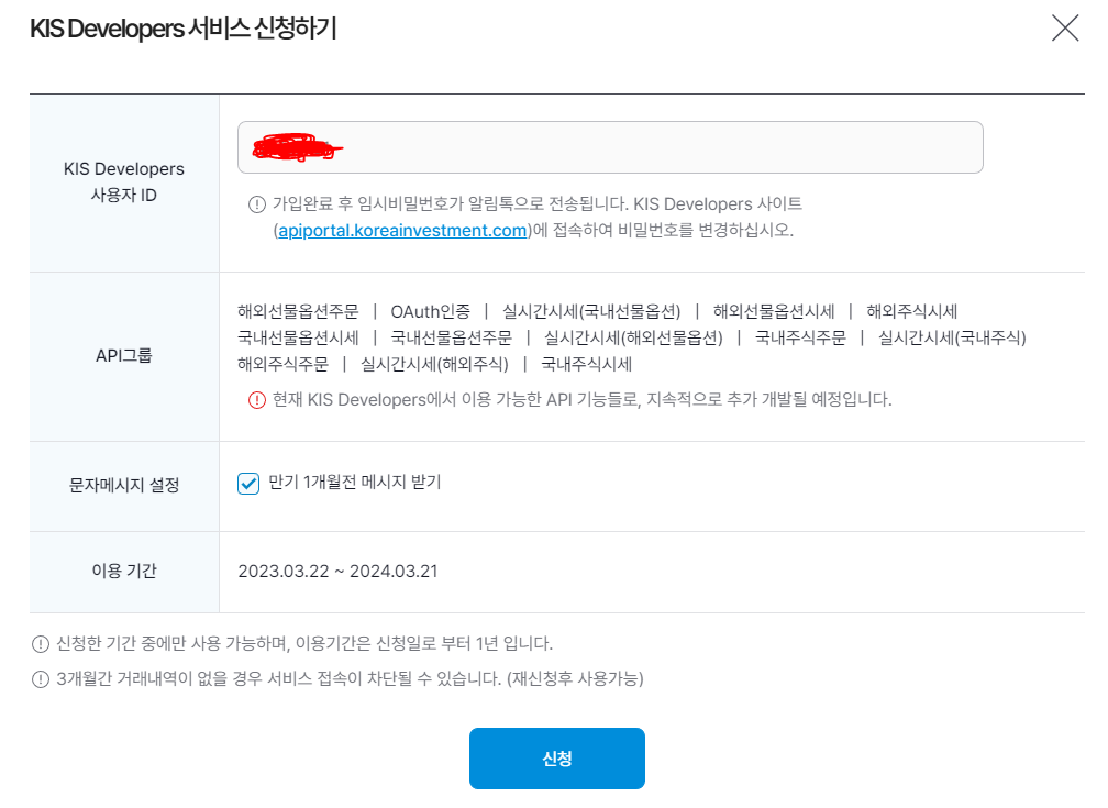 참고로 아래같이 이용기간은 신청일로 부터 1년임을 유의하여야 합니다.