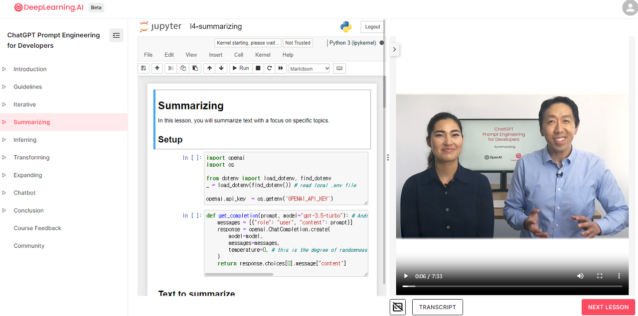 AI 입문하면 무조건 마주치게 되는 Andrew Ng 교수님과 OpenAI technical staff 인 Isa Fulford와 같이 "ChatGPT Prompt Engineering for Developers" 강의가 저번주 DeepLearning.AI 에서 출시 되었습니다. 강의 내용이 좋아서 후기, 장점, 각 강의에 대해 요약한 내용들을 정리하여 이 글에 공유하고자 합니다.