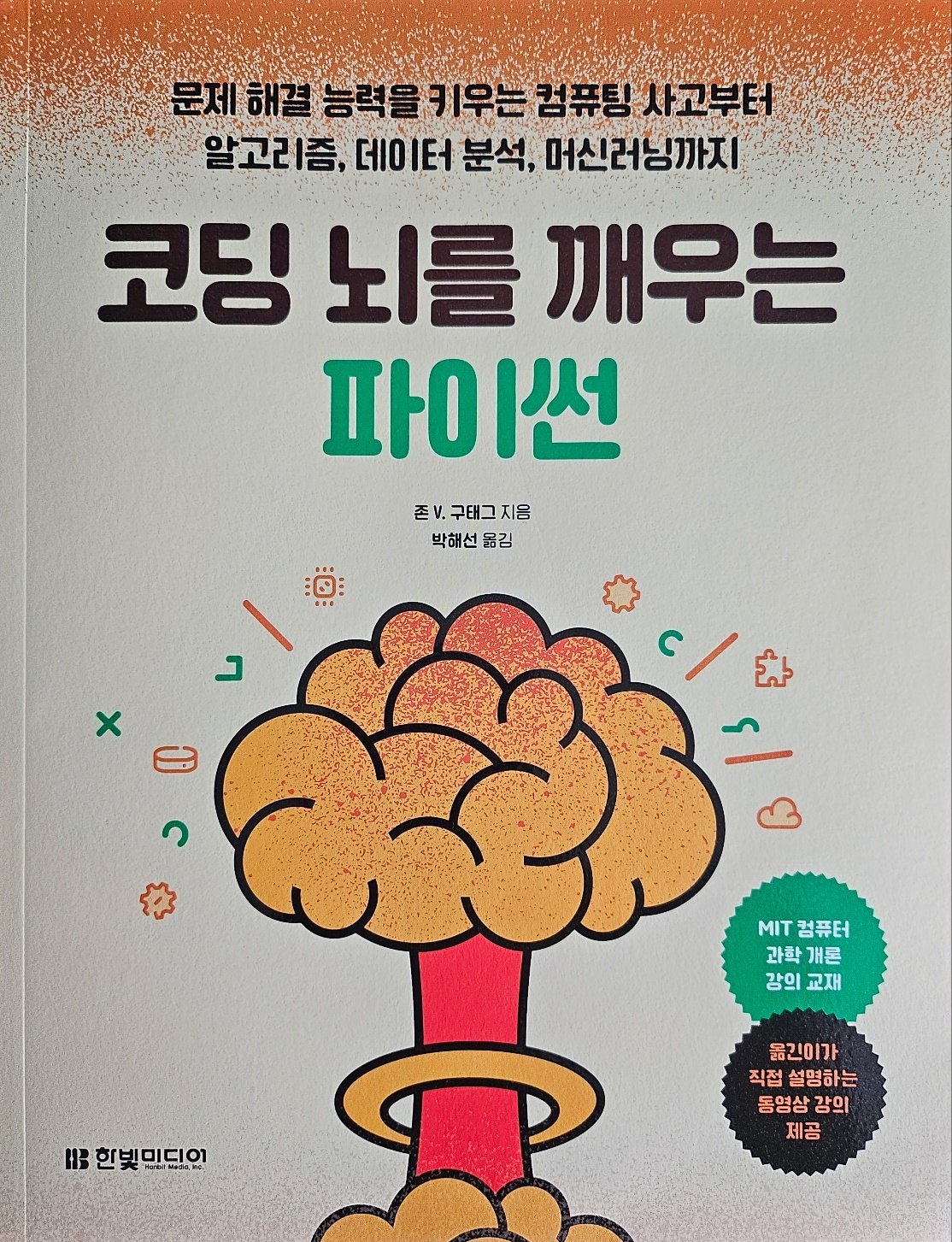 예전의 저를 예로 들면, 데이터 과학이나 머신러닝 위주로 공부를 시작했지만 프로그래밍이나 자료구조 관련된 서적을 찾아보고는 했었습니다. 하지만 이 책은 All-In-One 느낌이 있지만 있을 내용들은 기본적으로 다 있다고 판단되었습니다. 그리고 가장 이 책에서 강점이라고 생각되는 부분은 책 내부에서 뇌 풀기 문제 섹션에서는 문제해결능력과 사고력을 증진시키는 문제들이 많아서 입문서나 면접 질문으로도 좋은 내용이 많은 책이었습니다. MIT 강의를 바탕으로 만든 책이라 그런지 뇌풀기 문제는 퀄리티가 좋았습니다. 따라서 AI 분야나 프로그래밍을 입문하는 사람들에게 추천하고 싶은 책이였습니다.
