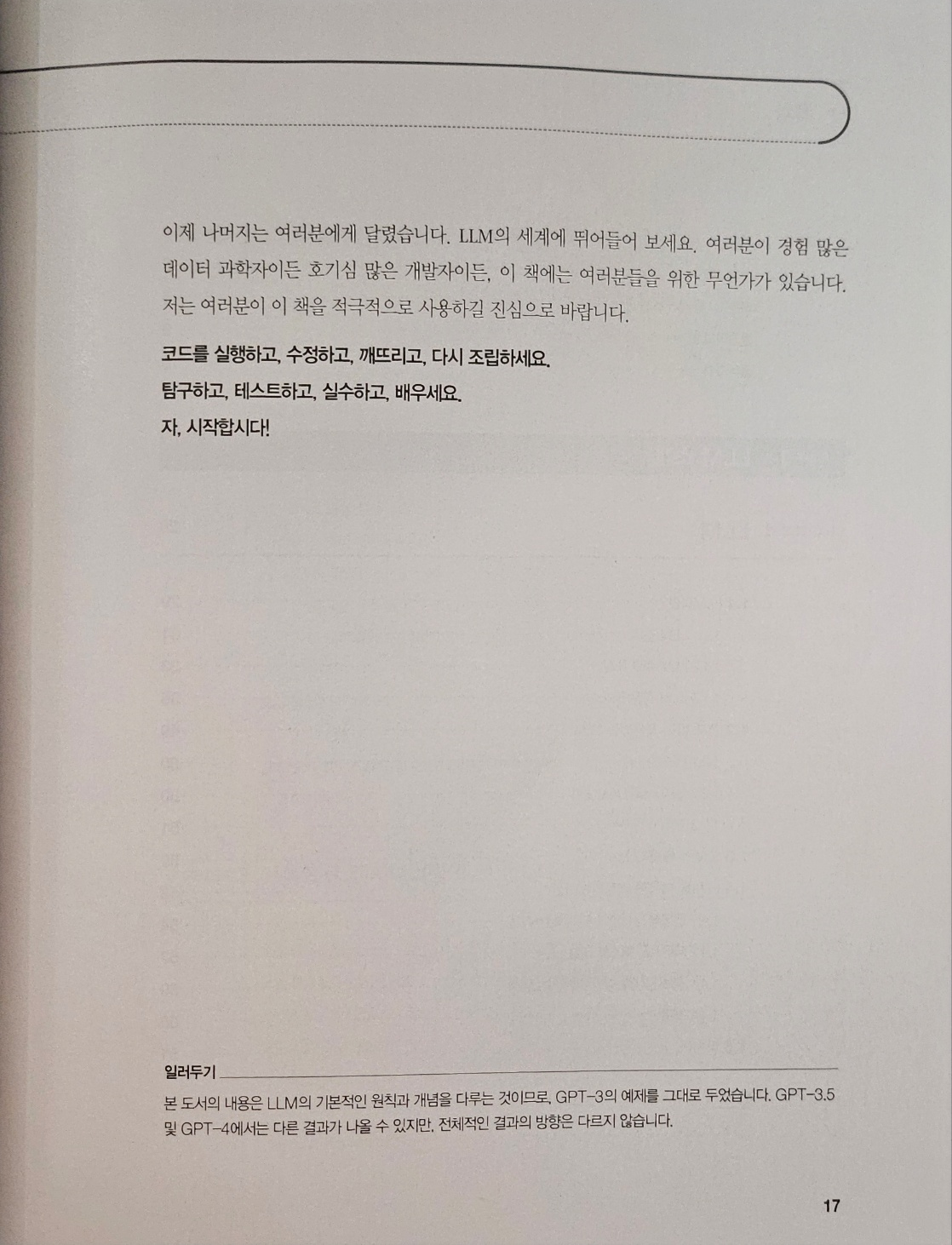 오래간만에 좋은 개발 서적을 Get 한 것 같아서, 종종 개념공부하고 점검하고, 교육하는데 활용하기 좋은 교보재라는 생각이 들었습니다. LLM을 입문하면서 Python Code를 다룰 줄 아시는 분들이라면 필수 도서라고 생각합니다.