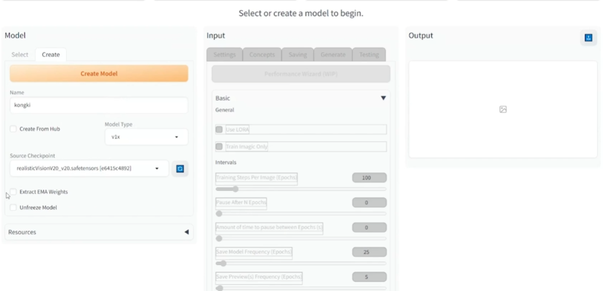 본인만의 새로운 모델을 만들기 전 새로운 모델의 베이스가 될 Source Checkpoint와 Model Type를 설정해주어야 합니다. 학습할 모델의 타깃이 실사 이미지일 경우 realistic과 같은 모델을 선택해야 하고, 2D 일러스트일 경우 원하는 그림체의 모델을 선택하는 것이 품질이 좋게 나옵니다. Model Type는 Source Checkpoint에 선택한 모델의 버전을 따라갑니다.