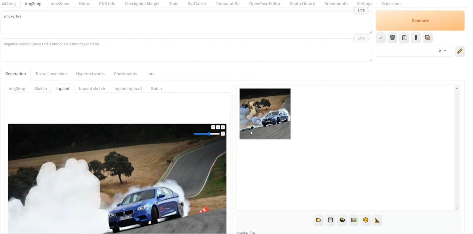 - 최종적으로 Generate를 누르게 되면 동영상 생성이 시작됩니다.