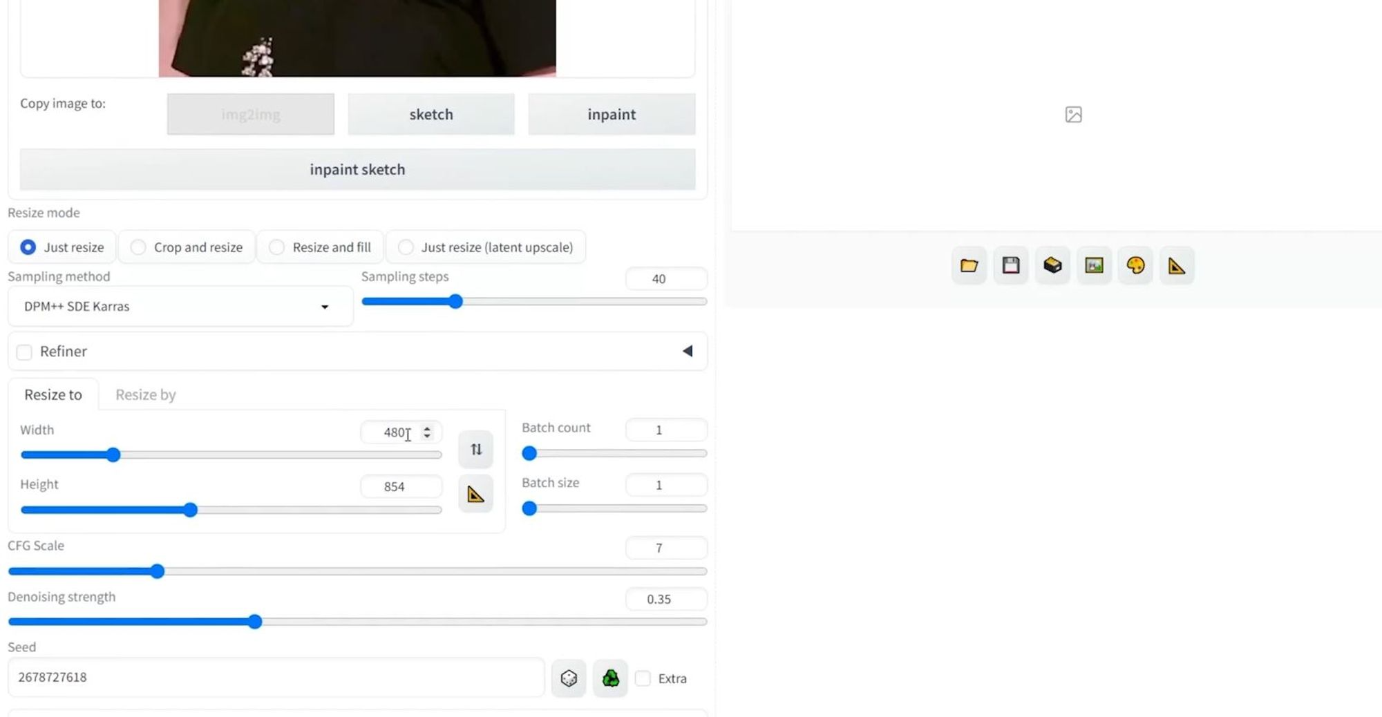 - Seed값을 img2img에서 생성한 이미지와 동일하게 적어줍니다.
