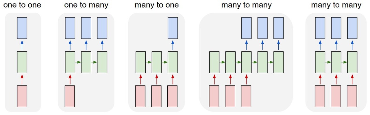빨간색 부분이 Input, 파란색 부분이 Output이라고 할 때, NLP에서 자주 쓰이는 유형은 3가지로 정할 수 있습니다.