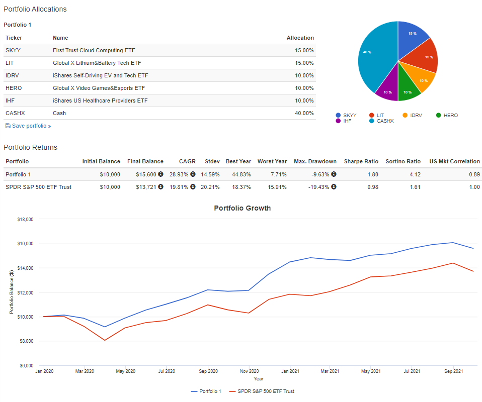 현금 대신 채권으로 들고 있어도 괜찮습니다. 작년에 SKYY, LIT, IDRV는 특히 많이 올라서 이런 결과를 보이는 것 같습니다. (각 섹터별로 다양한 ETF가 많지만 운용사와 거래량, Beta 값들 등을 고려하여 ETF를 선정하였습니다.)