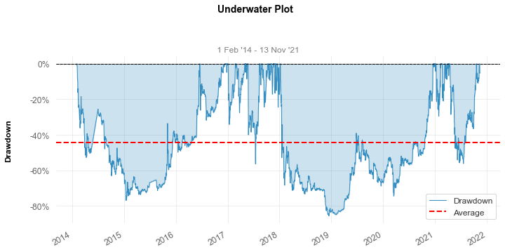 2017년에 비트코인은 엄청난 상승이 있었고, 2018년 초에 Drawdown의 골이 상당히 깊은 것을 알 수 있습니다.